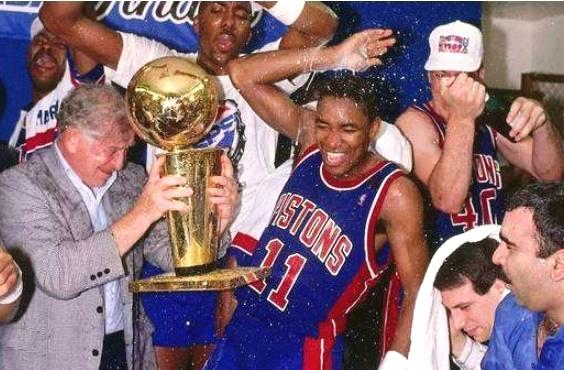 相信看到这里已经有朋友才出来了,就是底特律活塞队。八十年代的活塞靠着坏小子军团拿到了两座总冠军,他们球队的传统就是强硬和防守。那个时代活塞队的头号球星就是微笑刺客托马斯,当然当时他是联盟的顶级球星,遗憾的是微笑刺客职业生涯从来没有拿过常规赛MVP这个奖项。