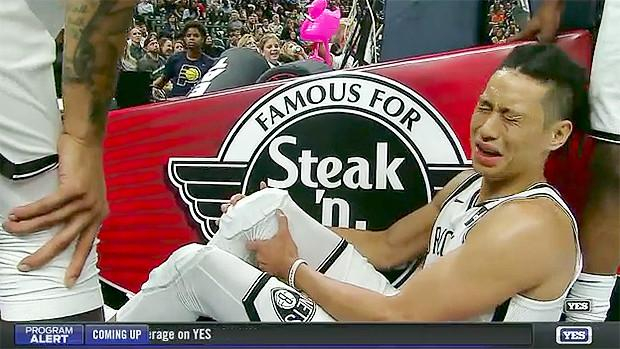 林书豪受伤时截图“我完了!我完了!我完了!”在原地躺了2分钟后,林书豪在队友的搀扶下走回更衣室,最终被确诊为右膝盖髌骨韧带断裂,赛季报销。