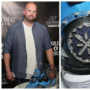 由纽约生活品牌 Bicion 与美国球鞋定制大师 Mache 共同打造,鞋面、鞋舌以及后跟镶满钻石珠宝,并配有一块纯金吊牌,奢华至极。