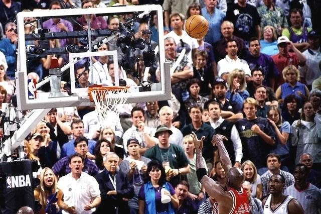 说完了科比我们再看34岁的乔丹,1996-97赛季,乔丹82场全勤场均出场37.9分钟,在如此高强度的比赛下乔丹场均贡献29分5篮板4助攻,带领公牛打出69胜13负东部第一的战绩进入季后赛。季后赛中乔丹场均出场42分钟,仅用了19场比赛就拿到了该赛季总冠军奖杯,场均31分7篮板4助攻荣获了总决赛MVP,同时也拿到该赛季得分王、最佳一阵、一防,遗憾的是他在MVP竞争中输给了总决赛对手马龙。