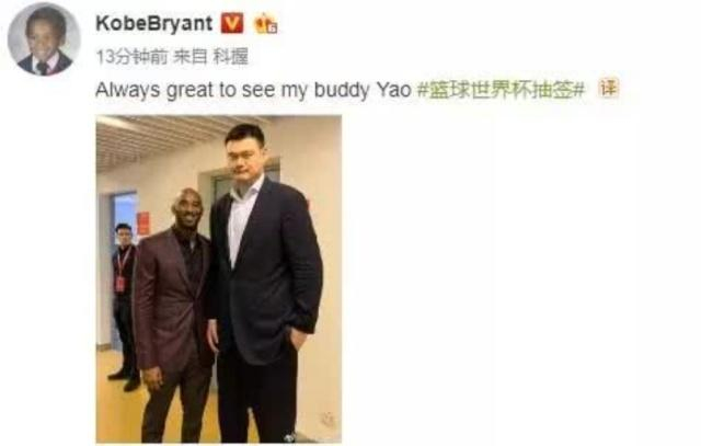 而作为本届世界杯的另一位大使,也是大家都知道的,目前就任中国篮球协会主席,也是中国男篮的代表人物姚明。作为东道主的中国,姚明自然是要接待好客人科比。而两人之前在NBA也是相知的朋友,作为老队友也是惺惺相惜。