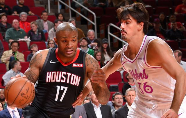 在上一场对阵太阳的比赛中,德安东尼就让保罗高挂免战牌,事实证明,CP3获得休息后是非常有用的,在今天面对森林狼的比赛里,保罗全场只打了28分钟就高效砍下25+7+10,并且命中了平个人生涯纪录的6记三分。保罗回归,德帅今天则是轮休了小里弗斯和半兽人法里埃德,可以看到,这场比赛火箭实际上还是只用了9人轮换,克拉克只在垃圾时间打了3分钟而已。