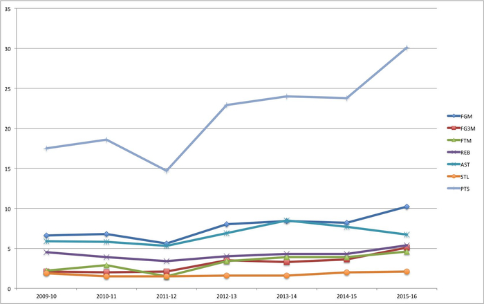 在评价球员表现的时候,有三个高阶数据是公认的很有参考性的。首先是PER(NBA球员效率值),这是由球员的基础数据按照公式计算出来,可以体现球员在场上的综合表现。第二是VORP(球员与可替换球员的绝对价值差),这数据体现的是该球员与联盟该位置平均水平的球员的差异,可以横向比较他和同位置球员的差距有多大。第三个是BPM(真实正负值)可以体现球员对球队胜利的贡献值。