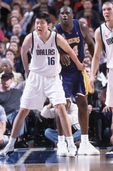 2、王治郅出生于1977年,身高2.14米,主要位置是中锋和大前锋,以投射和脚步著称。王治郅1999年以第二轮第7顺位被小牛队选中,然而因为八一队和篮协不放人,一直到2001年帮助八一夺冠后,王治郅才出现在NBA的赛场中。 2001-05年曾效力于NBA独行侠、快船以及热火队。王治郅是中国篮球界进入NBA的第一人,被评选为中国篮坛50大杰出人物和中国申办奥运特使。他和姚明、蒙克·巴特尔一起,被称为篮球场上的“移动长城”。