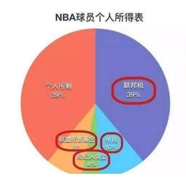 上图是NBA球员每年工资纳税的图。在这里我稍微更正一下,每个州的州税由各州自己制定,所以有的州州税奇高,而有的州州税低到没有。勇士队队员每年要交接近12%的州税,而马刺球员则不用交州税。