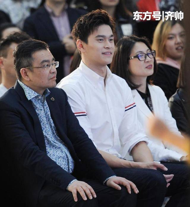 孙杨身高1米98,他曾戏言自己的身高优势:"如果不是选择了游泳,我或许会成为一名篮球运动员。"再加上常年游泳健身的缘故,孙杨的身材也完美的几乎无人能及。孙杨身穿白色衬衫,站在一众西装革履的高管中间,显得格外阳光扎眼。