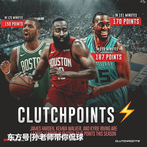 先讲讲什么是关键球吧,关键球指的是比赛最后五分钟,两队分差在5分以内。在这两个条件下所进的球,才能被称为关键球。就在今天,美媒《clutchpoints》晒出了本赛季关键球得分榜。排名第一的是,哈登,关键球时间一共138分钟,得了187分。第二的是沃克,关键球时间151分钟,得了170分。而欧文以150分(125分钟)排在第三。