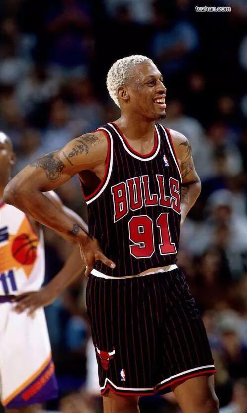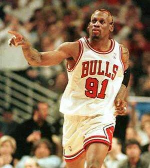 今天的主人公是前NBA球员丹尼斯·罗德曼。他就是以前公牛王朝和乔丹还有皮蓬成的铁三角成员。绰号“大虫”。