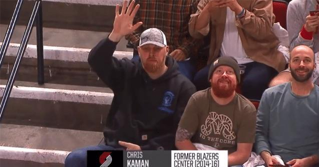 NBA观众席上你永远不知道有哪些大牌球星,但是比赛期间能够给到镜头的一般都是有名号的人物,开拓者比赛中镜头就转向了一位戴帽子、留着胡子的中年大叔,显然大部分球迷都没有能够认出这是何许人也?