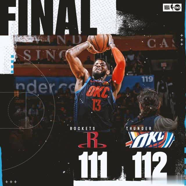 状态正好的火箭队艰难战胜需要努力提升排名的雷霆队。