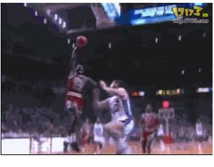 首先自然是罚球线扣篮的代表人物乔丹。目前搜集到的资料中,乔丹有两次接近罚球线起跳的实战扣篮,但他两次都不是从正面起跳,都是在罚球站位区的角上起跳。相比之下,客场对阵活塞那次貌似更远,而且难度也更大,因为在飞行过程中,有防守队员起跳阻拦。