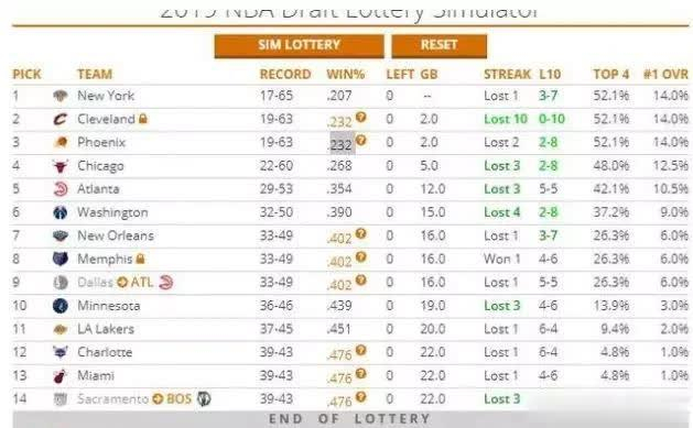2019选秀抽签顺位出炉:绿军倒霉透了!