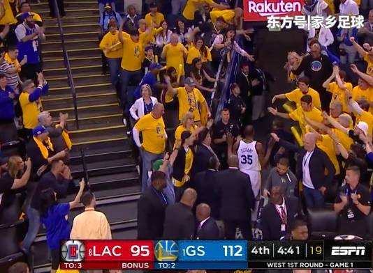 NBA季后赛开战,勇士队在主场121:104轻取快船队,比赛进行到第四节时,场上发生了离奇的一幕。