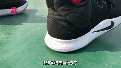 但是在实战中做发力突破的时候,前掌Zoom气垫可以给到很好的反馈。注意,单纯是反馈,也就是纯粹的弹而已。其他的缓震感觉不想多说什么。前掌垂直起跳落地的时候,还是会有点震脚,缓震的感觉要比曾经做过的CP3 11差一点。后掌用的泡棉比起威少来说那真的是天差地别了。总体来说是偏硬的,垂直起跳会有一点震脑袋,有明显的震脚但是比PG2好一点点。