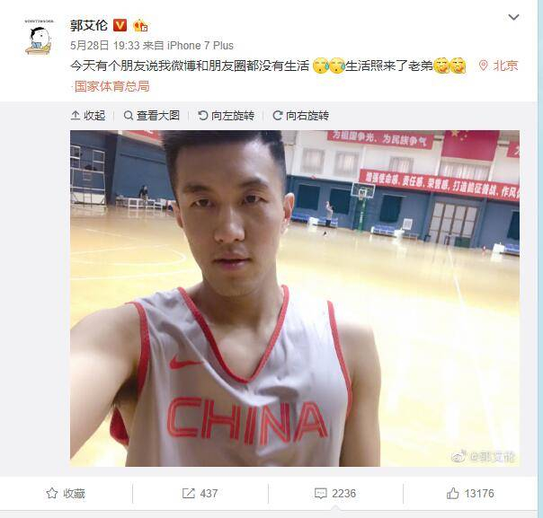 直播吧5月30日讯 昨晚正在国家体育总局参加集训的郭艾伦更新了自己的微博。
