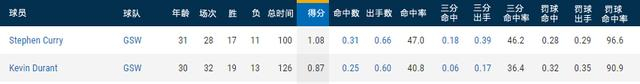 在分均得分方面,库里以10.8分高居勇士队内首位,领先凯文-杜兰特多达0.21分。同时库里在分均出手数上同样占优以0.66次险胜杜兰特的0.6次。在得分效率上面,这位勇士当家后卫的把握性也更为出色,47%的投篮命中率和68.6%的真实命中率与欧文基本相当。而相比之下,杜兰特的效率则稍逊一筹,关键时刻投篮命中率仅为40.8%,真实命中率为57.7%。因此从数据上看,无论是分均得分还是拿分效率上,库里才是那个更好的选择。因此关于库里打不了关键球的传言也同样不攻自破了。