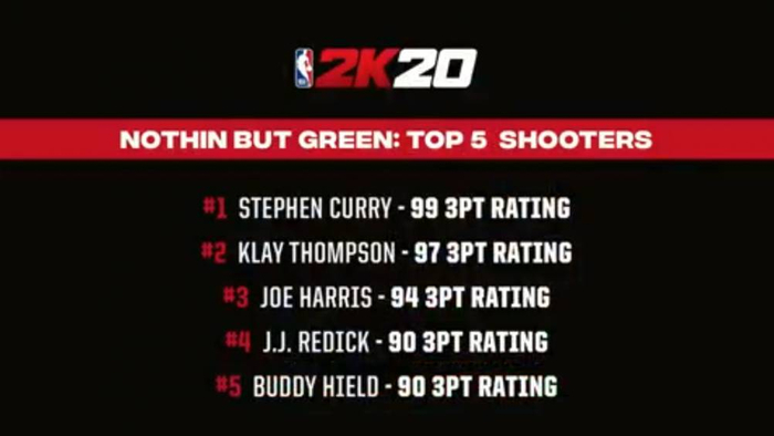 NBA 2K20三分能力TOP5:库里三分99 克莱三分97