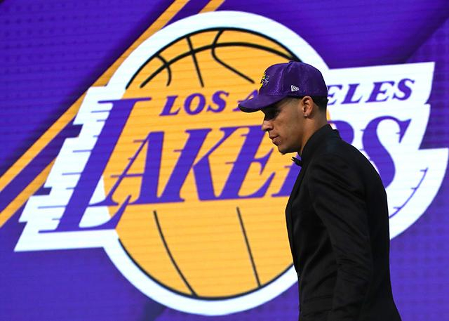 “洛杉矶湖人在首轮第2顺位选择来自UCLA的朗佐-鲍尔。”