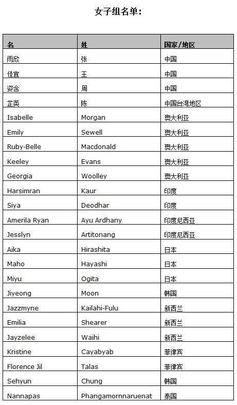 以下是参加第11届“篮球无疆界”亚洲训练营的完整球员名单