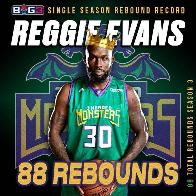 篮板王!雷吉-埃文斯破BIG3联赛常规赛总篮板数纪录