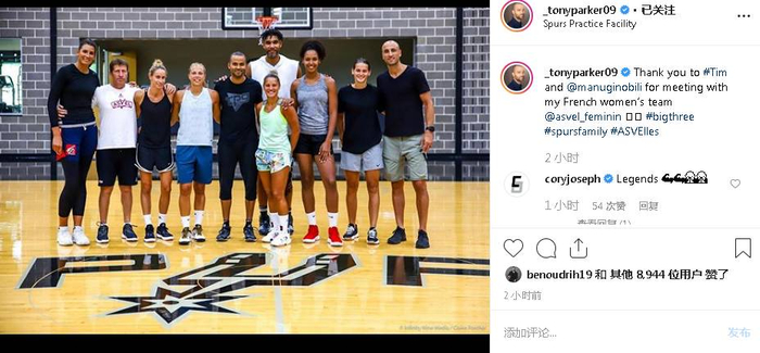 “感谢@马努-吉诺比利和@蒂姆-邓肯与法国女篮队员们见面。”帕克说道。