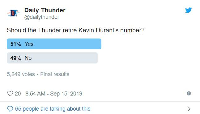 (推特网络投票是否应该退役杜兰特球衣,5249人投票,51%是49%否)