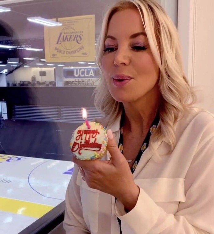 直播吧9月27日讯 今天是湖人老板珍妮-巴斯的58岁生日,她更新了自己的社交媒体Instagram,晒出了一张吹生日蛋糕蜡烛的照片。