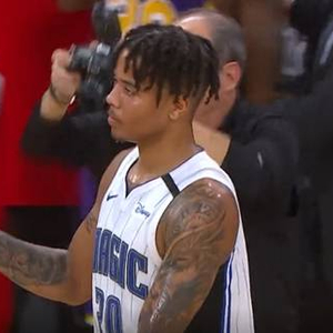 轮换阶段,班巴+戈登+克拉克+T-罗斯+BJ-约翰逊这套阵容阵地战追打老迈迟缓的杜德利,防守端依旧掐勒布朗放其他人投,湖人中远投3投0中外加2次失误,魔术以防守反击确立20分领先优势。