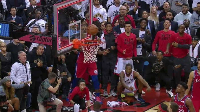 终场的蜂鸣器鸣响前,莱昂纳德在完全失去平衡的状态下完成了一次不可思议的绝杀。在球离开他的指尖时,我想“这不可能”。球在篮筐上弹了一下,我默念“不可能”。第二下、第三下,“去特么的!不可能!”。直到第四下,直到篮球倔强地钻进了网窝,不管是为什么,它就是进了,他就在我面前完成了一切。