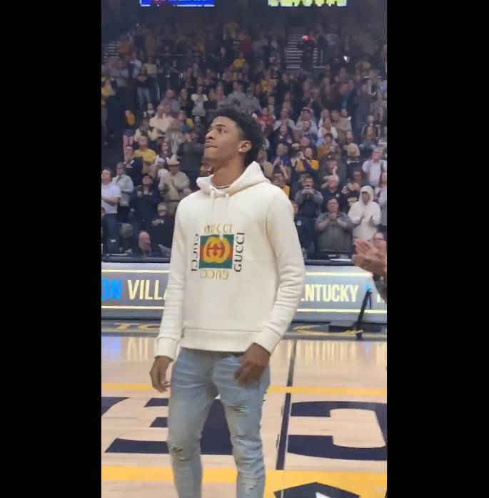 直播吧2月2日讯 在今天上午,灰熊新秀莫兰特回到自己的母校穆雷州立大学参加自己的球衣退役仪式。
