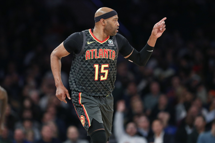 2018年夏天,身为自由球员的卡特接到了金州勇士队的邀请,但倔强的老飞人不愿去混一枚总冠军戒指,于是婉拒了勇士,转而与亚特兰大老鹰队签约,1819赛季里,卡特超越了加内特来到了职业生涯总出场数的历史第六位,超越了贾马尔-克劳福德来到了三分球历史排行榜的第六位,NBA总得分突破25000分大关,排名历史得分榜的第20位。