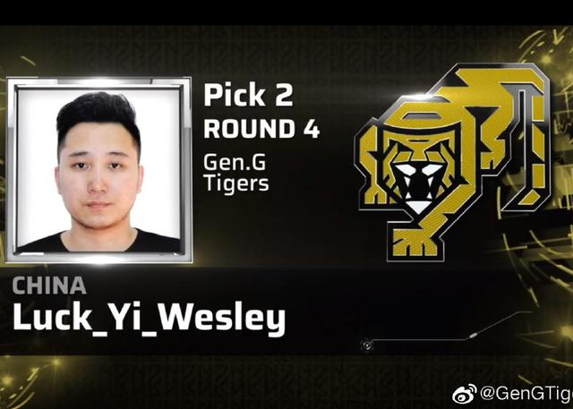 34. | 上海Gen.G Tigers | Wesley Mcnair | Gen |