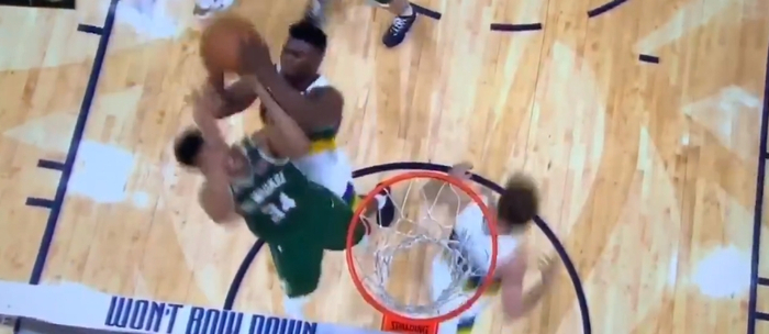 现在看来,唯一可以很好限制锡安的人就是字母哥和浓眉这样,移动速度快,身体不太吃亏,而身高臂展占据绝对优势的前锋。但是今天的锡安显然吸取了上次对阵字母哥失败的经验,更多选择持球面框冲击。