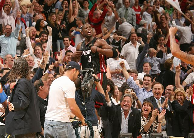 赛后,韦德跳上中场技术台,对着全场球迷高喊——这里是我的主场!