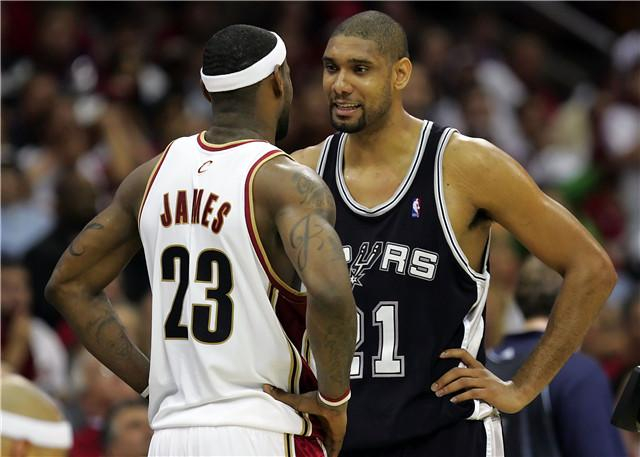 2007年总决赛,邓肯领衔的马刺在总决赛中以4-0横扫了詹姆斯的骑士。