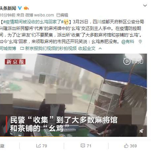 直播吧3月27日讯 3月25日,四川成都天府新区公安分局兴隆派出所民警将“代养”的麻将牌中的“幺鸡”交还到主人手中。