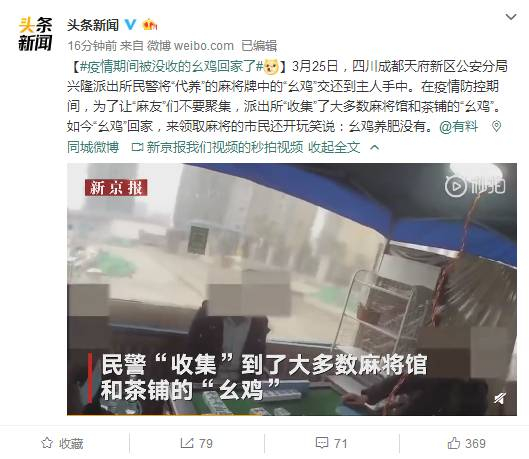 疫情期间被没收的幺鸡回家了 四川民警将麻将还给市民