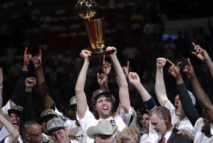 球迷们都说这个冠军属于单核带队的诺维茨基,FMVP的奖杯也很好的印证了这一点,但在接受采访时,诺天王并未将所有功劳独揽,而是重点称赞了钱德勒,认为他是球队真正的MVP,时任小牛总经理唐-尼尔森也说过:“泰森为我们带来了多年来达拉斯不曾拥有的赛场因素。”