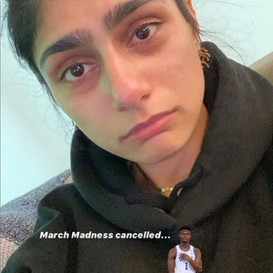 直播吧3月29日讯 今天,美国知名成人女星Mia Khalifa谈到了此前NCAA疯狂三月停赛,她在个人社交账号里晒了一张自己的憔悴自拍照。