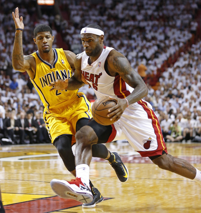 2012年季后赛第二轮,步行者将热火逼到了第6场。那轮系列赛至今都让人记忆犹新,詹姆斯从韦德手中接过接力棒,并让热火成为了他的球队。虽然有4场比赛的分差都是个位数,但詹姆斯场均得到30分11篮板6助攻,并征服了步行者。