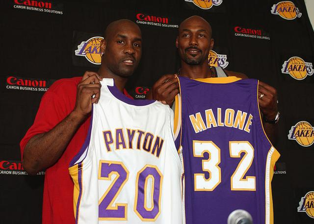 “你知道吗伙计,那可不一样。我们加盟洛杉矶是因为我和卡尔(马龙)早就已经计划好和对方一起打球了,”佩顿如是说,“讨论了差不多有两届全明星,我们认为自己不会在原来的球队待很长的时间了,因为我们的老板有点不太一样,他们想要摆脱我俩,想要寻求更年轻的阵容。所以马龙一直在跟我说一起打球的想法。”