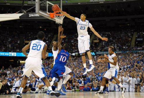 2012年疯狂三月,浓眉在8进4淘汰赛砍下18分11板6帽,率领肯塔基淘汰贝勒大学,杀入终极四强;半决赛,浓眉贡献18分14板5帽,击退路易斯维尔大学挺进决赛;他在总决赛10投1中仅得到6分,但他拼下16板6帽5助,以防守影响比赛,加冕NCAA总冠军+四强赛MOP——他连续三场关键比赛盖帽5+篮板10+,真正做到了以“防守赢得总冠军”。