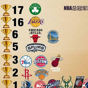 NBA球队总冠军排行榜:绿军第一LA第二 11队从未夺冠