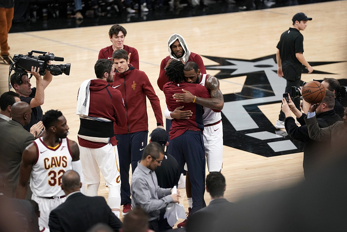 詹姆斯数据:场均26.7分,7.5个篮板,7.0次助攻,15.6胜利贡献值