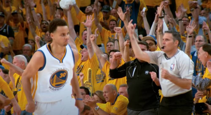 在第三场被骑士队击败后,勇士队在第四场的中场还落后骑士五分。但在下半场,在库里的带领下,73胜的勇士卷土重来。