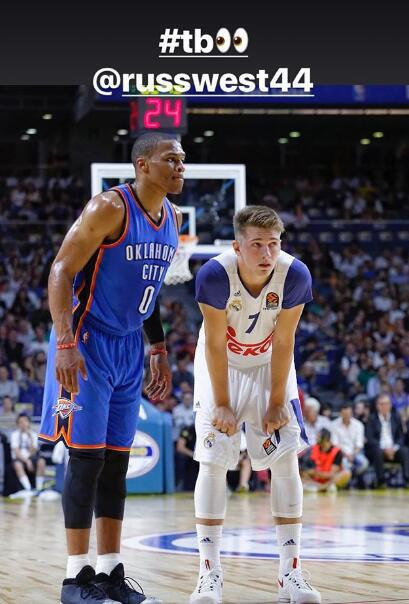这是威少首次和少年东契奇在场上对阵,东契奇还曾在自己的社交媒体上发布了和威少的“合影”。