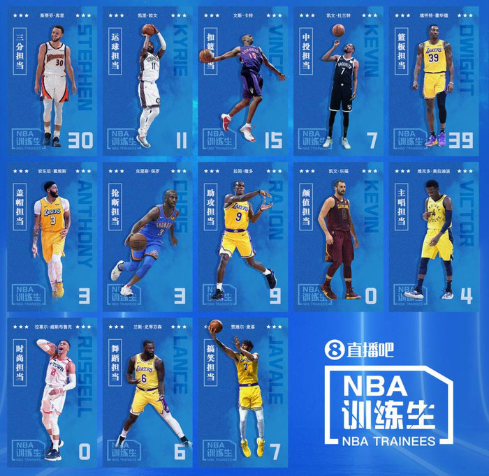 直播吧推出全新评选栏目《NBA训练生》,邀请吧友们参与投票,选出13位“身怀绝技”的球星“组团出道”,“打造”新一代人气男团!