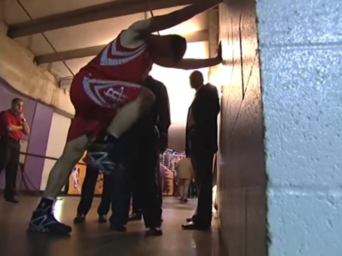 勒布朗-詹姆斯在2月26日客场来到休斯顿第一节刚开始就命中了一记远投,一记干脆的远距离跳投2分到手,但协防的姚明根本就是放弃了补防,对于那时的詹姆斯来说,最好的防守方式就是逼迫他进行远投或者投射。