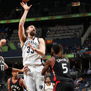 随后加索尔为康利掩护后外弹,接球再中三分。下一回合,加索尔继续挡拆外弹,瓦兰丘纳斯不得不扑出来,但加索尔假投真突完成抛投。随后加索尔在三分线面对犹豫的瓦兰再中三分。比赛开场4分钟,小加索尔已经得到了13分。猛龙的替补内线更是拿小加索尔没有办法,首节比赛小加狂砍19分。