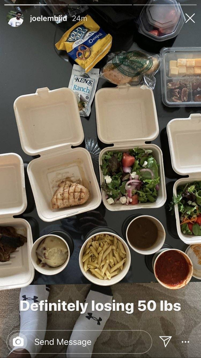 恩比德晒复赛伙食:我要瘦50磅了